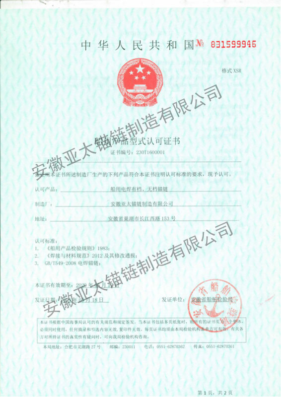 安徽亞太錨鏈制造有限公司是國家高新技術(shù)企業(yè),也是國家GB/T 549-2017《電焊錨鏈》標(biāo)準(zhǔn)的起草和制定單位之一。公司旗下設(shè)有錨鏈分廠、浮標(biāo)分廠、舾裝件分廠等多個分廠。公司專業(yè)從事φ12.5mm-φ107mm二、三級船用錨鏈、浮標(biāo)錨鏈、錨鏈附件,錨、船舶曬裝產(chǎn)品、航標(biāo)、系船浮、船型標(biāo)、多種規(guī)格海洋監(jiān)測浮標(biāo)及航標(biāo)燈等產(chǎn)品的生產(chǎn)、安裝和服務(wù)。目前公司的產(chǎn)品銷往全國各地船廠、碼頭、航標(biāo)處、航道局、海洋局,并已走上國際市場,如東南亞、中東、歐美等國家。